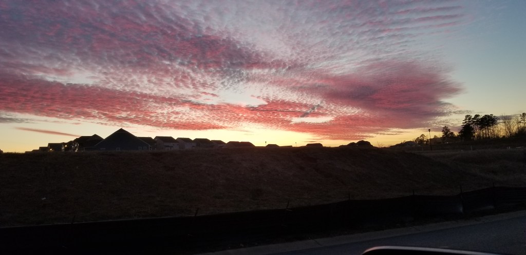 It was during one of our recent raining for days on end episodes. When it wasn’t raining or cloudy, I was busy inside, not able to see the sunset. Then, one day, it was sunny, and I had taken the girls to dinner as a girls night while daddy was at a bible study. On the way home, we saw this sunset.